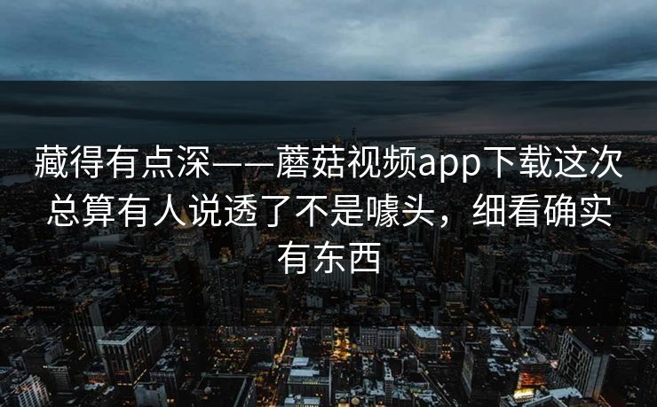 藏得有点深——蘑菇视频app下载这次总算有人说透了不是噱头,细看确实有东西